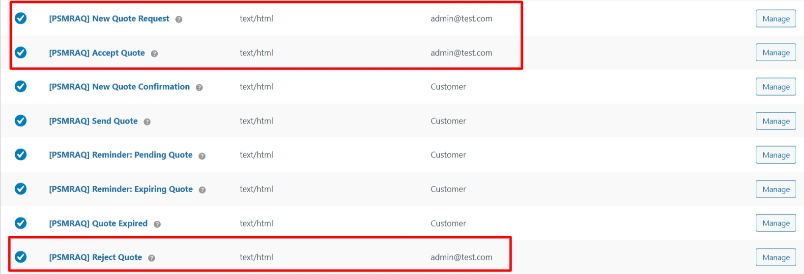This section explains the admin email notifications added by PSM Request a Quote.